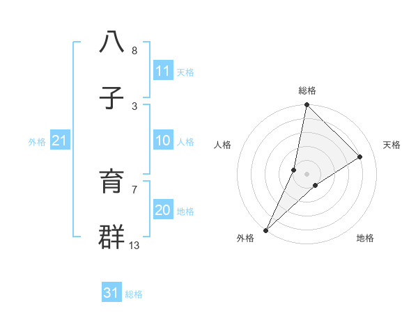 八子 育群さんの総格は31画の5点!