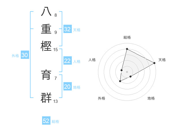 八重樫 育群さんの総格は52画の4点!