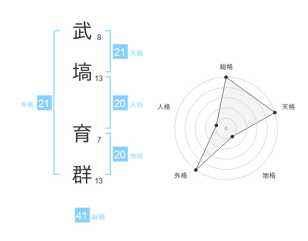 武塙 育群さんの天格は21画の5点!
