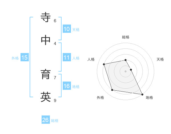 寺中 育英さんの総格は26画の2点!