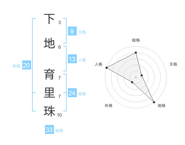下地 育里珠さんの総格は33画の4点!