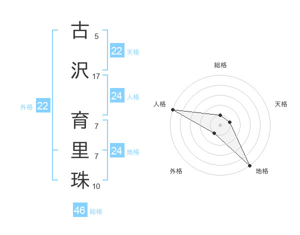 古沢 育里珠さんを姓名の画数から五運を鑑定