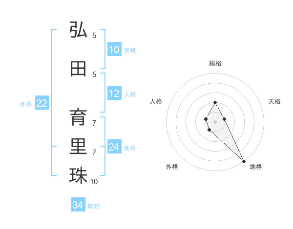 弘田 育里珠さんを姓名の画数から五運を鑑定