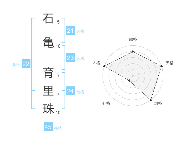 石亀 育里珠さんを姓名の画数から五運を鑑定