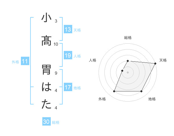 小髙 胃はたさんの天格は13画の5点!
