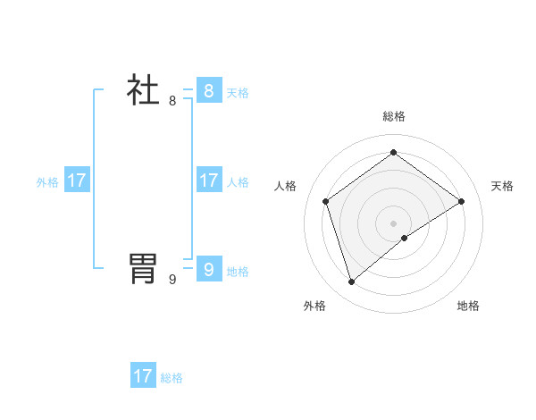 社 胃さんの総格は17画の4点!