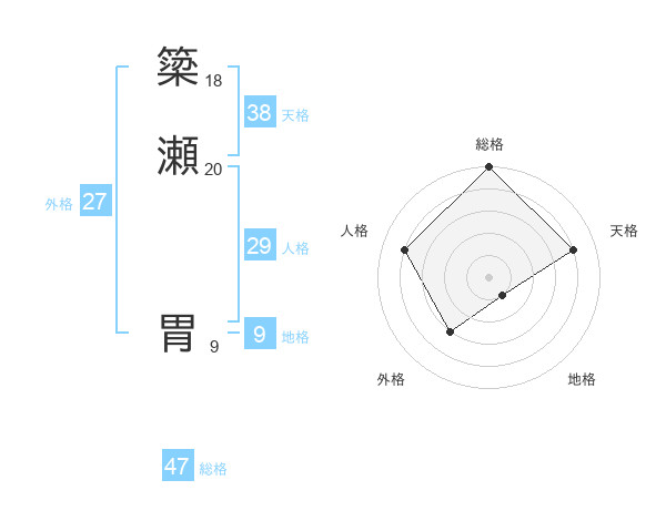 簗瀬 胃さんを姓名の画数から五運を鑑定