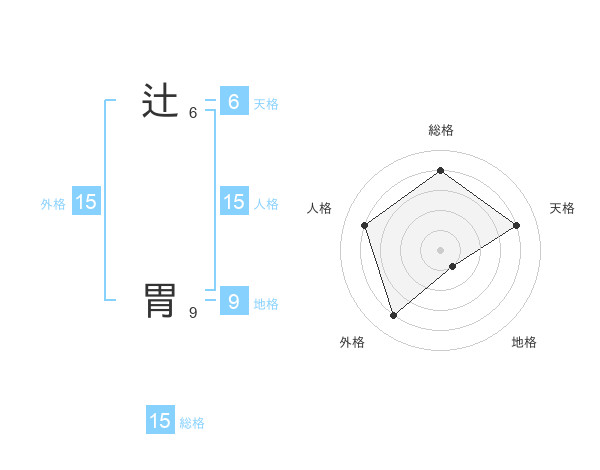辻 胃さんの外格は15画の4点!