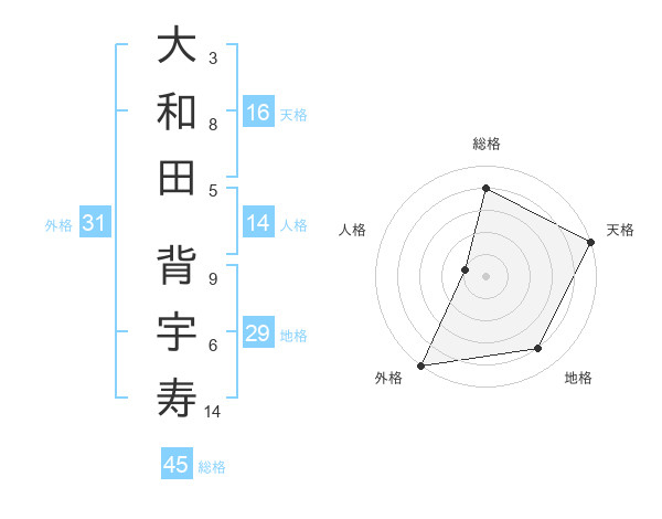 大和田 背宇寿さんを姓名の画数から五運を鑑定