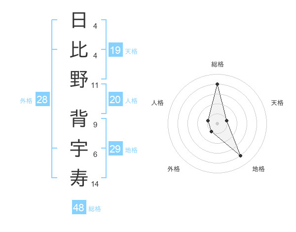 日比野 背宇寿さんを姓名の画数から五運を鑑定