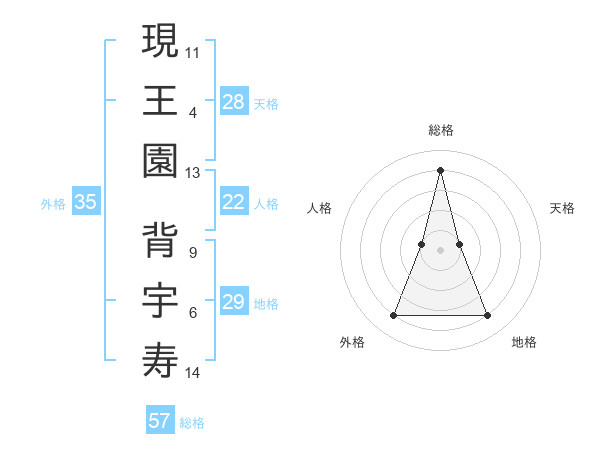 現王園 背宇寿さんを姓名の画数から五運を鑑定