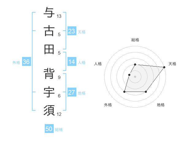 与古田 背宇須さんを姓名の画数から五運を鑑定