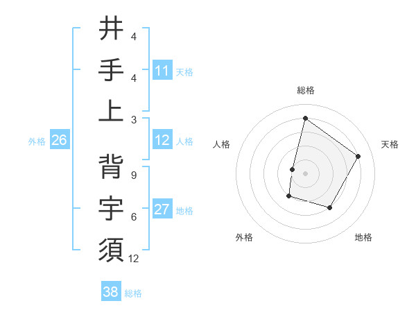 井手上 背宇須さんの総格は38画の4点