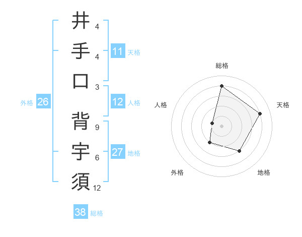 井手口 背宇須さんの総格は38画の4点!