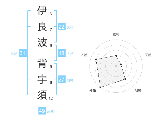 伊良波 背宇須さんを姓名の画数から五運を鑑定
