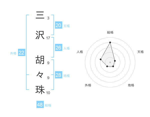 三沢 胡々珠さんを姓名の画数から五運を鑑定