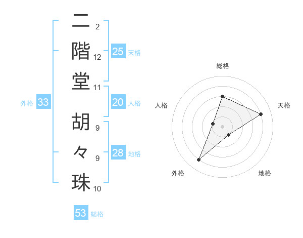 二階堂 胡々珠さんの外格は33画の4点!
