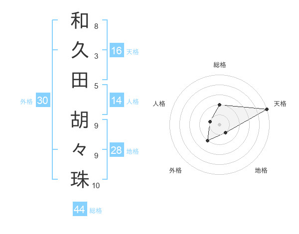 和久田 胡々珠さんの天格は16画の5点!