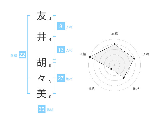 友井 胡々美さんの総格は35画の4点