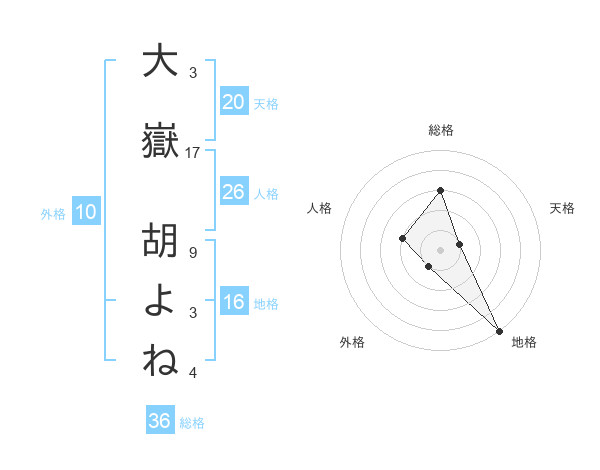 大嶽 胡よねさんを姓名の画数から五運を鑑定