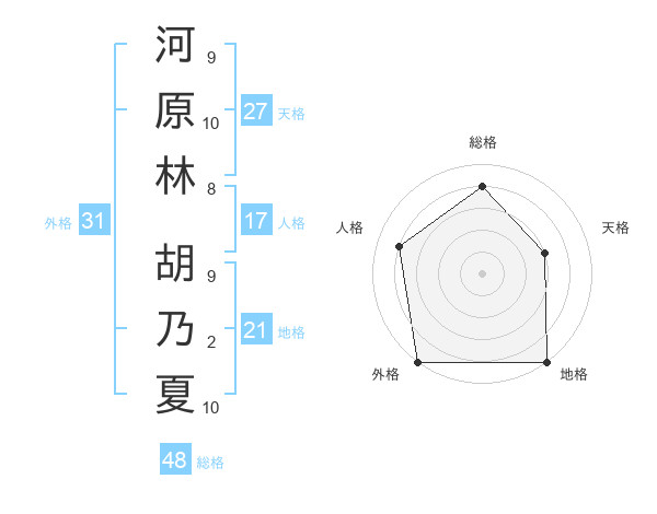 河原林 胡乃夏さんを姓名の画数から五運を鑑定