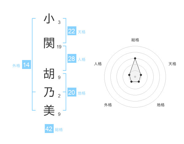 小関 胡乃美さんの総格は42画の3点!