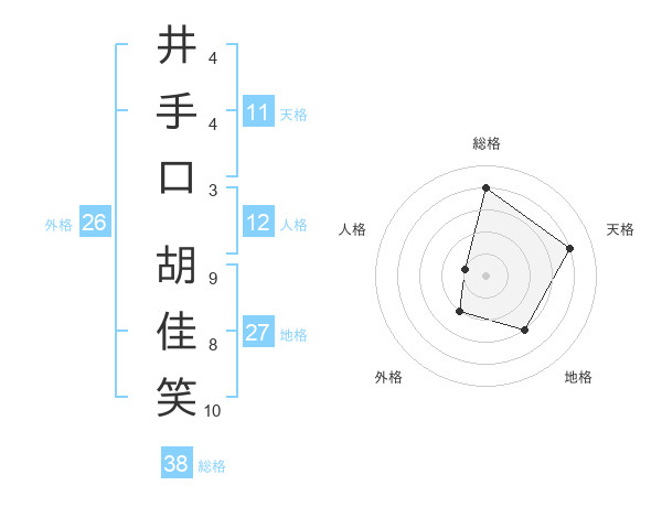 井手口 胡佳笑さんを姓名の画数から五運を鑑定