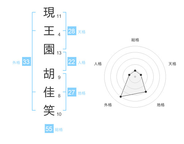 現王園 胡佳笑さんを姓名の画数から五運を鑑定
