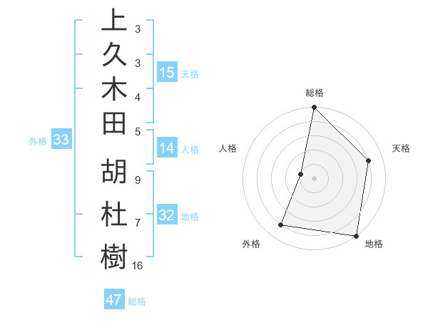上久木田 胡杜樹さんの外格は33画の4点!