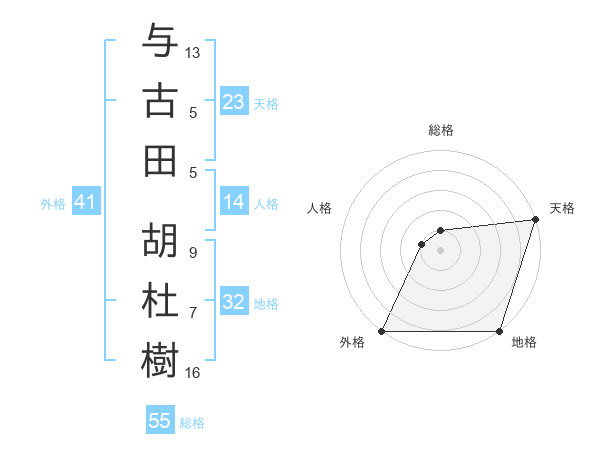 与古田 胡杜樹さんを姓名の画数から五運を鑑定