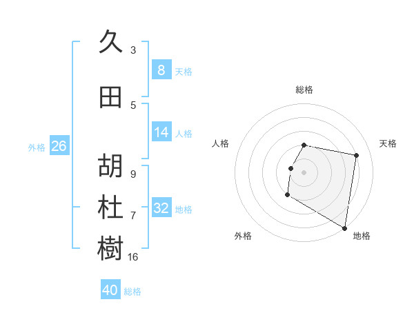 久田 胡杜樹さんを姓名の画数から五運を鑑定