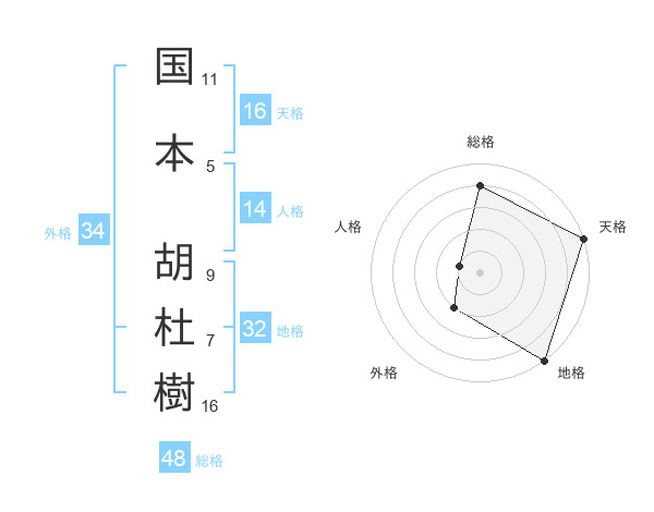 国本 胡杜樹さんを姓名の画数から五運を鑑定