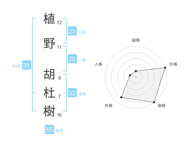 植野 胡杜樹さんを姓名の画数から五運を鑑定