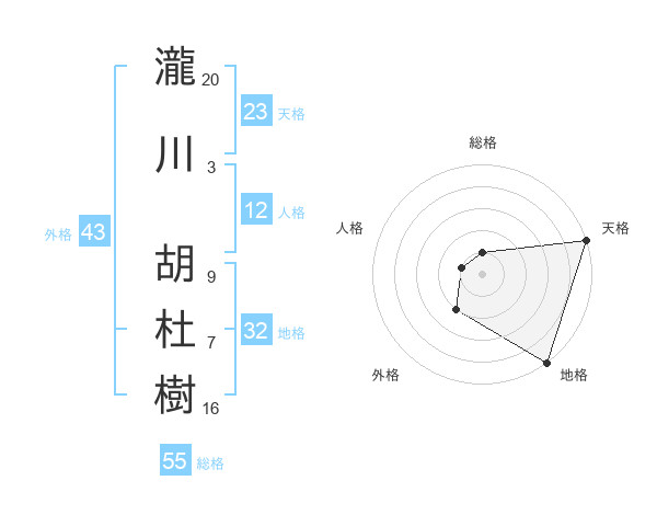 瀧川 胡杜樹さんを姓名の画数から五運を鑑定