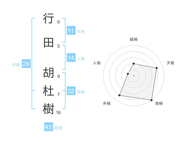 行田 胡杜樹さんを姓名の画数から五運を鑑定