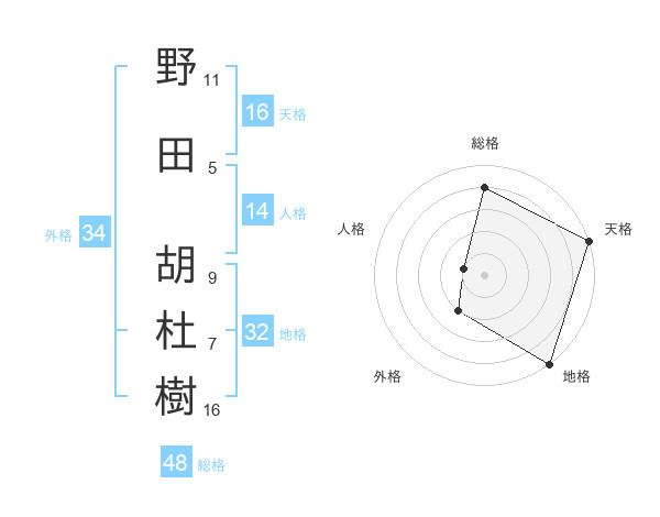野田 胡杜樹さんを姓名の画数から五運を鑑定