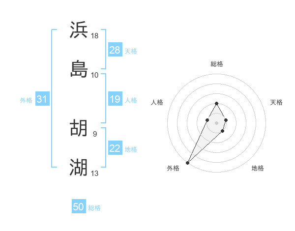 浜島 胡湖さんの外格は31画の5点!