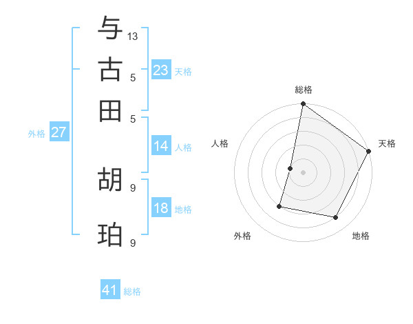 与古田 胡珀さんを姓名の画数から五運を鑑定