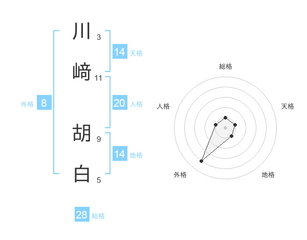 川﨑 胡白さんを姓名の画数から五運を鑑定