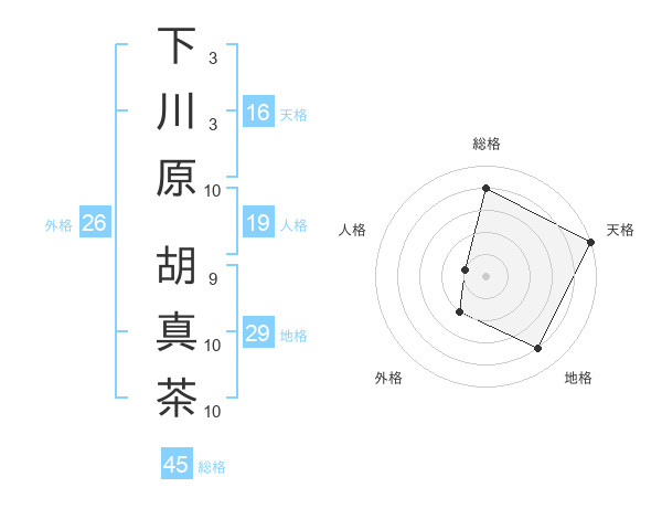 下川原 胡真茶さんを姓名の画数から五運を鑑定