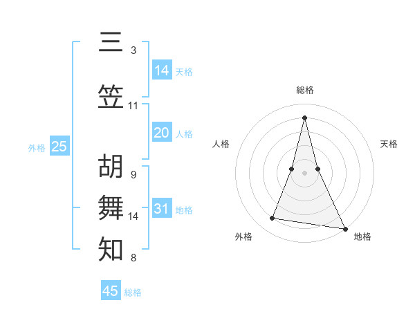 三笠 胡舞知さんを姓名の画数から五運を鑑定
