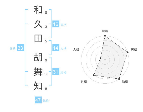 和久田 胡舞知さんの総格は47画の5点!