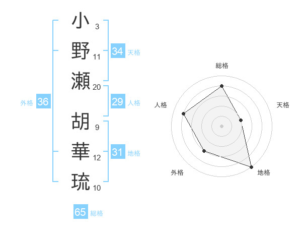 小野瀬 胡華琉さんを姓名の画数から五運を鑑定