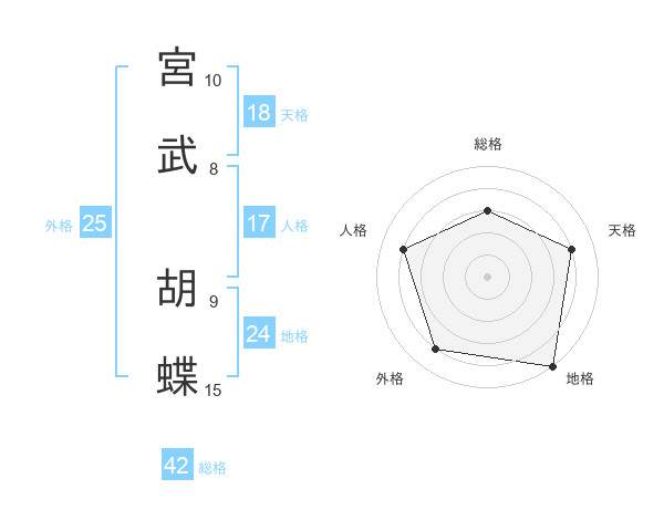 宮武 胡蝶さんの総格は42画の3点!