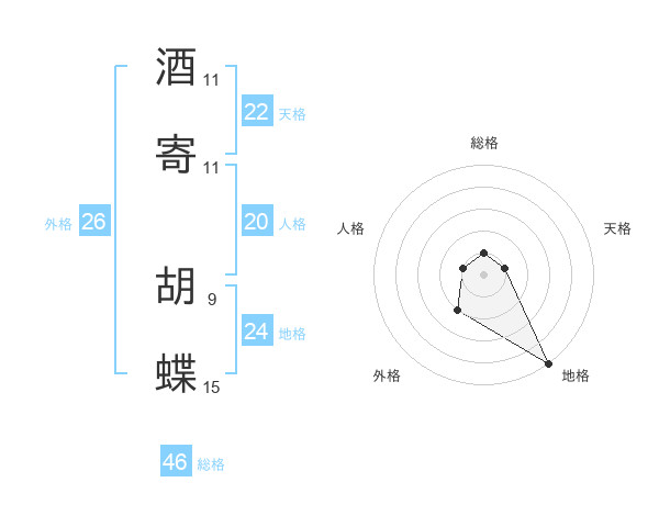 酒寄 胡蝶さんの外格は26画の2点!