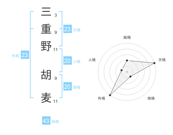 三重野 胡麦さんを姓名の画数から五運を鑑定