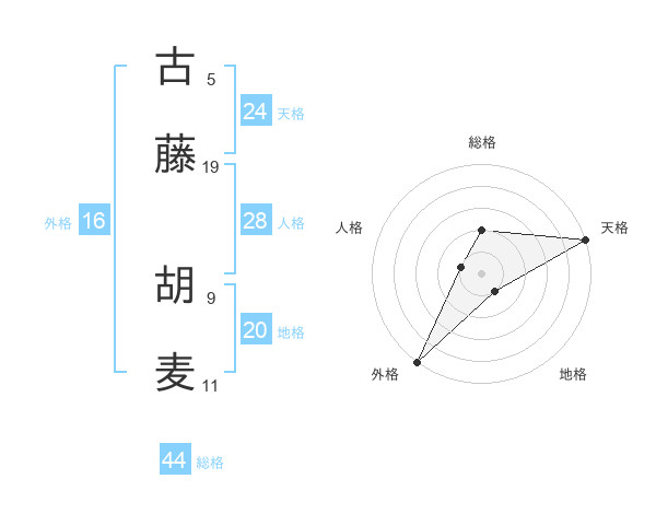 古藤 胡麦さんの天格は24画の5点!