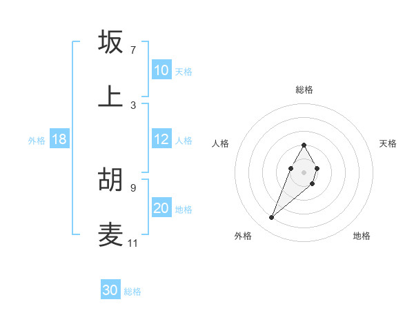 坂上 胡麦さんを姓名の画数から五運を鑑定