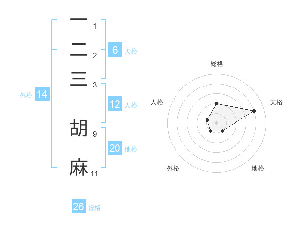 一二三 胡麻さんを姓名の画数から五運を鑑定