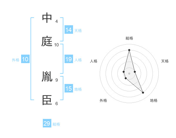 中庭 胤臣さんの総格は29画の4点!